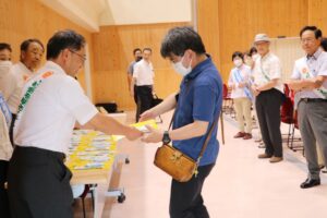 茂木分区では町民センターで行われた青少年健全育成大会の会場で、更生保護女性会の方たちと啓発グッズを配布、更生保護への理解と協力を呼びかけました。