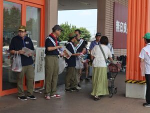 真岡市は道の駅にのみや、 とりせん東光寺店、イオンビッグエクストラの3カ所で、更生保護女性会、青少年健全育成協議会、ボーイスカウトの皆さんとともに啓発活動を行いました。