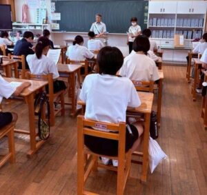 市貝町は市貝中学校の生徒たちに社明運動や更生保護などについて話をしました。